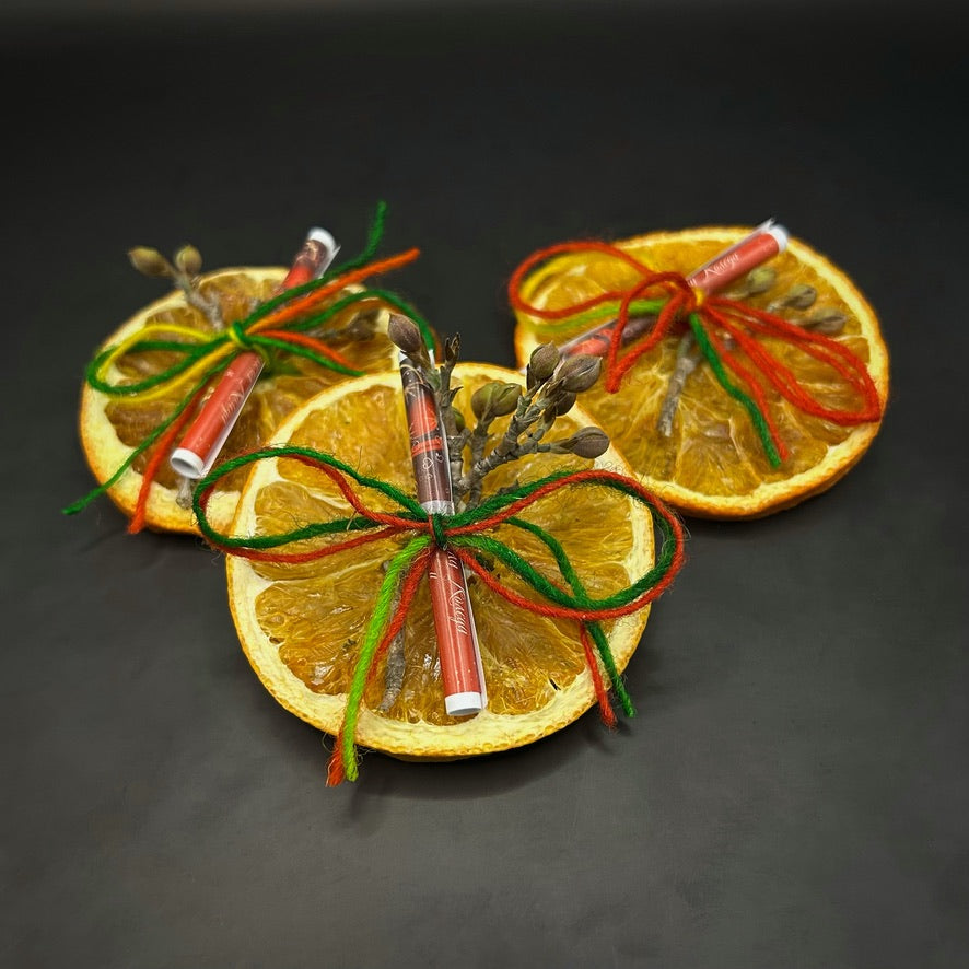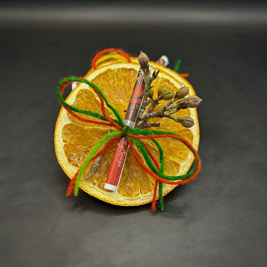 Съчетава в себе си изсушен портокал — символ на слънце и изобилие, и дрян — древен български знак за здраве, сила и дълголетие.
