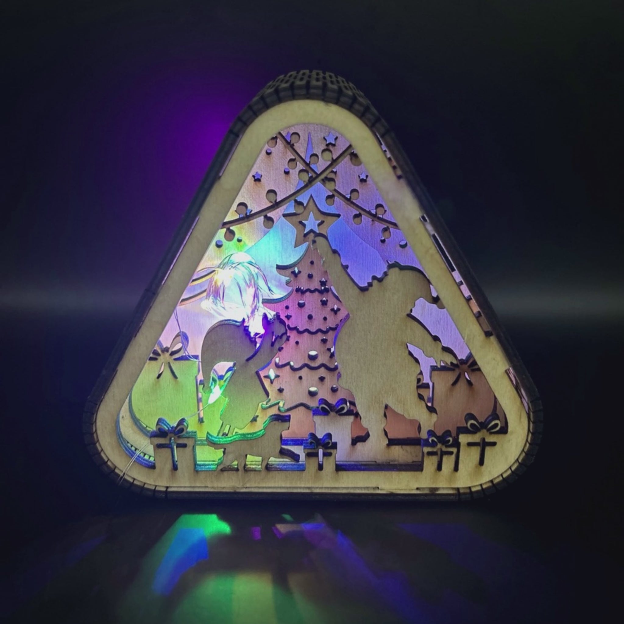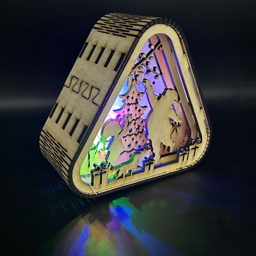 Тази триъгълна коледна лампа улавя онзи най-красив момент от празниците — когато започва истинското вълшебство.